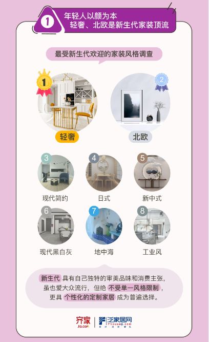 为表达自己独特的审美品位和消费主张,年轻人对家装风格的选择呈现出多样化的特征,轻奢、北欧、简约、日式、新中式等家装风格受追捧,与此同时,孟菲斯风、波普风、斯堪的纳维亚风等小众的家装风格也开始成为年轻人打造“高逼格”的选择。