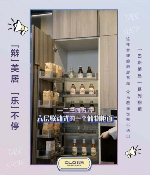 同时,我乐橱柜研发团队也不断研发便捷耐用的优质五金配件,为厨房生活创造无限可能。比如,这款六层联动拉篮,以更加便捷和整洁的储物方式,在刚刚过去的我乐家居&马薇薇双十二直播活动中,不仅深得马薇薇盛赞,更是得到了网友的一众好评!