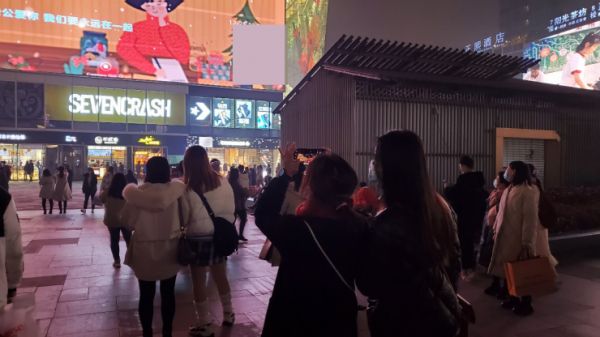 2020年12月25日晚,《微喵嘉年华》联动北京世贸天阶、成都银石广场开启“云端祝福”的活动。