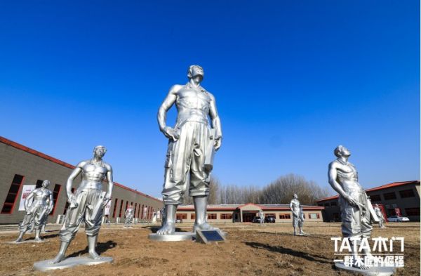 TATA木门总部门前摆放着一群艺术雕塑,一个形象高大的大木匠仰首看着远方,身边跟着一群小木匠,这是TATA木门配合2020年新品发布会主题“一群木匠的倔强”特意打造的雕塑。发布会结束后,再看它们又是另一种感觉,很多人兴奋地与它们拍照,眼中闪着光,似乎是找回了骨子里的倔强。
