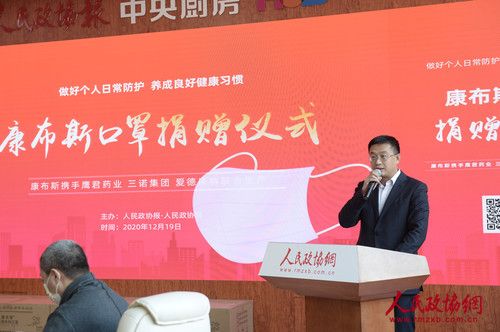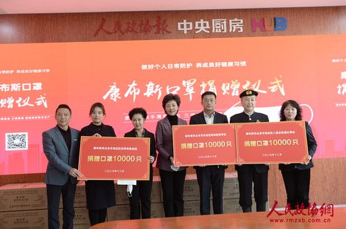人民政协网北京12月19日电(记者 宋宝刚 李敏杰 满达呼 周晓东)12月19日下午,由人民政协报、人民政协网主办的康布斯口罩捐赠仪式在京举行。全国政协委员、农工党宁夏区委会主委戴秀英,人民政协报社党委书记、社长王相伟,香港华人华侨总商会荣誉会长、北京康布斯技术发展有限公司董事局主席施乃康出席发布会。