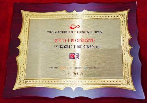 赋能合作,同创共赢。多年来,立邦始终坚持以更创新的产品体系、更高效的服务和更全面的整体解决方案,为更多地产合作项目提供高效高质的战略合作。以刷新的力量,与客户同行,通过创新,引领发展,成就地产开发合作伙伴产品价值力的提升。此次登榜2020年度中国房地产供应商竞争力评选竞争力10强第一,不仅是地产开发企业在长期合作中对立邦的认可,也将成为共创美好价值的发展驱动力。