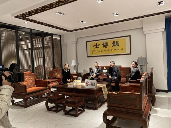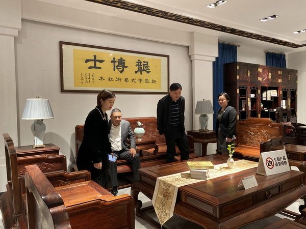 在参观过程中,龙博士家居总经理莫文芳介绍,龙博士家居以办公家具起家,至今也一直在坚持,并将办公家具与红木相结合,致力打造既符合当代人生活习惯,又具艺术、传承和收藏价值的家居。同时,也钻研阔叶黄檀、刺猬紫檀等国标红木家具的设计与制作,以大国工匠精神、高品质出品为核心,用极具“中国风”又不失“ 国际范”的红木家具为载体,弘扬中国传统文化。