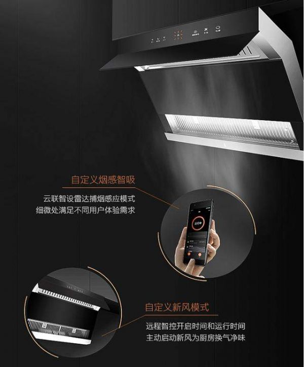 在外观方面,S72穹翼烟机在设计上融入了新包豪斯主义风格,设计纯平明朗却不失品质格调,机身盈薄,仅有365mm,高度与橱柜齐平,可完美嵌入厨房整体家装中,颠覆了传统烟机笨拙粗重的形象,给厨房赋予了更多美学。此外,它还搭载了loT云联智控技术,随手一挥就能快捷开关,还能远程智控烟机的开启和运行,实时监测运行状态