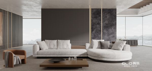 再如我乐家居设计师推荐搭配沉砂白系列、淡墨红茶系列与欧泊石系列的组合,呈现出栅格板与双饰面的搭配,同样利用金色型材做缝隙衔接与收边。多元材质的相交融合,让低调奢华的浪漫氛围走进生活,呈现出居住空间的优雅气质。