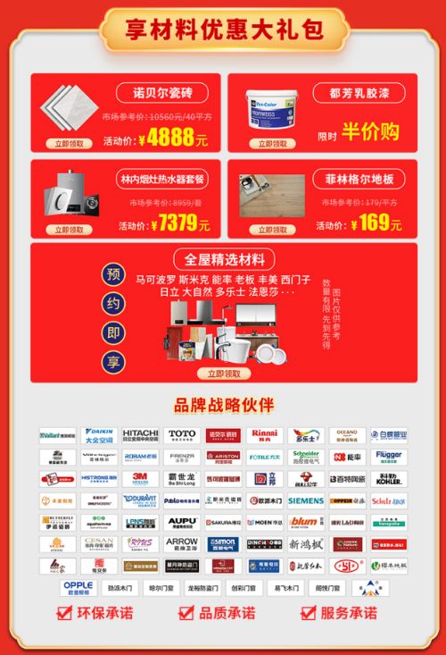 此外,为了让业主们在预算范围内享受到更高端、更品质、更周到的家装服务,达到更超值划算的装修效果。诺贝尔瓷砖、都芳乳胶漆、菲林格尔地板、林内烟灶等百姓装潢众多战略合作伙伴,都在出席展会并推出全屋装修材料和家装用品超值放送活动。