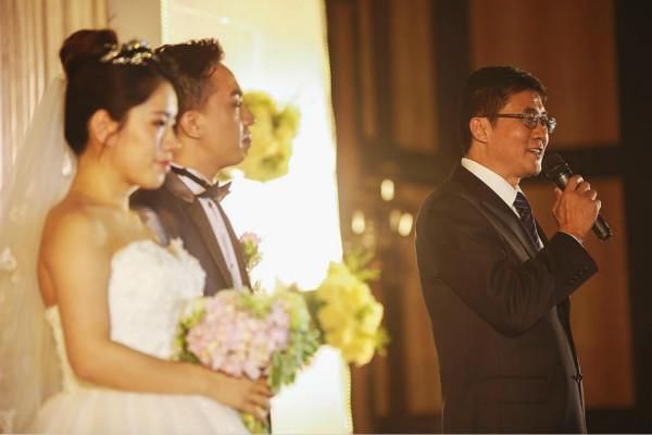 站在舞台中央,此时此刻我内心非常激动,但又有很多不舍,因为从今以后女儿即将离开我们这个家庭,走上属于自己的另一个小家庭,希望小夫妻两人能够幸福恩爱一辈子,拥有了小家之后,要忠贞不渝,也要维护好家庭,希望两人能够幸福快乐。
