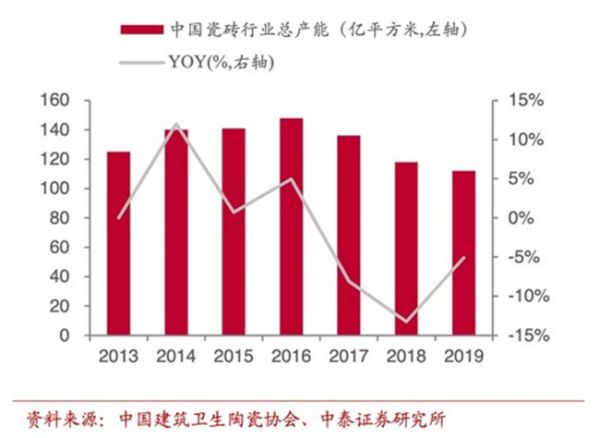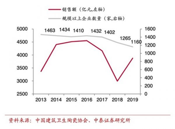 到了2018年,大环境转变,苦日子随之来临。瓷砖总产量从2018年的90.11亿平方米,降到2019年的82.25亿平方米;2019年,规模以上企业数量只剩1160家,同比减少105家。