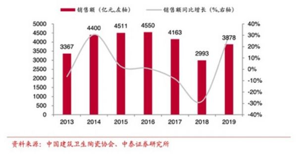 2010-2017年那会儿,日子还算好过。经济好,需求旺,在肥沃的土壤里,建筑陶瓷市场蓬勃生长,规模以上建筑陶瓷企业的主营业务收入,从2302亿增长到4163亿。