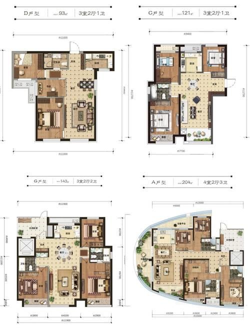 主力户型为93-204㎡舒适3-4房,