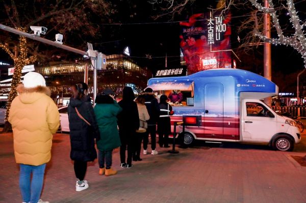 2020年12月30日夜——2021年1月1日夜,“美的温度补给站”在北京浓情上线。这是一个由美的微波炉发起,并联合滴滴代驾和伊利营养奶粉一起举办的公益活动。在跨年的前后三个夜晚,一辆名为“美的温度补给站”的移动餐车行驶在北京的街头巷尾,为深夜晚归的人送上一份热食。同时美的微波炉还为医院、环卫站、滴滴驿站免费提供了美的定温热微波炉。美的微波炉希望通过食物的温度来传递更多温暖,让更多的人在漫漫寒夜与温暖同行。