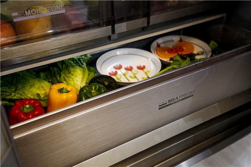 卖得好不好看数据,保鲜好不好看科技。传统冰箱一般都是靠控温来保鲜,比如零度保鲜、恒温储鲜等。但很多人不知道,温度波动并不是让食材流失营养的唯一途径,和氧气发生反应也会使食材流失营养。于是,在控温保鲜之上,卡萨帝又发明了MSA控氧保鲜科技。