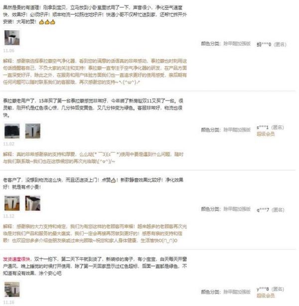 泰拉蒙空气净化器主要功能是除甲醛、除TVOC、除菌消毒等,机器LED屏能显示PM2.5、TVOC、甲醛等数值,还有三色灯显示对应的空气质量,红色代表差,黄色代表中,绿色代表优,让消费者一眼就知家里空气好不好,很多消费者也表示这一点很满意。