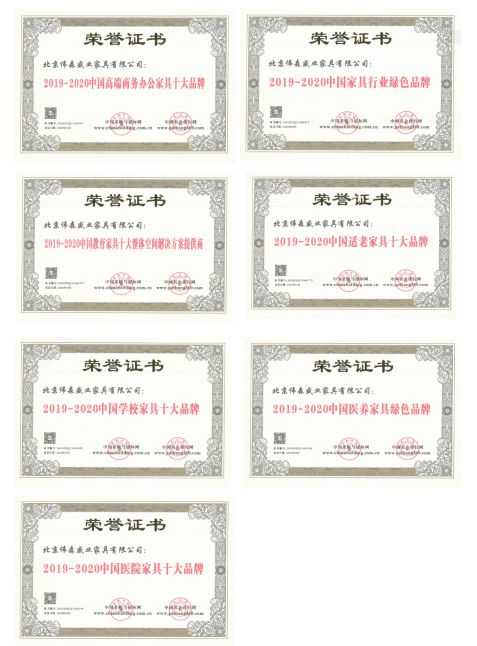北京伟森盛业家具有限公司在随后举行的“2020第14届全国招标投标领域年度聚焦颁奖典礼”上,荣获“2019-2020中国医院家具十大品牌”、“2019-2020中国医养家具绿色品牌”、“2019-2020中国学校家具十大品牌”、“2019-2020中国适老家具十大品牌”、“2019-2020中国教育家具十大整体空间解决方案提供商”、“2019-2020中国家具行业绿色品牌”、“2019-2020中国高端商务办公家具十大品牌”荣誉称号。