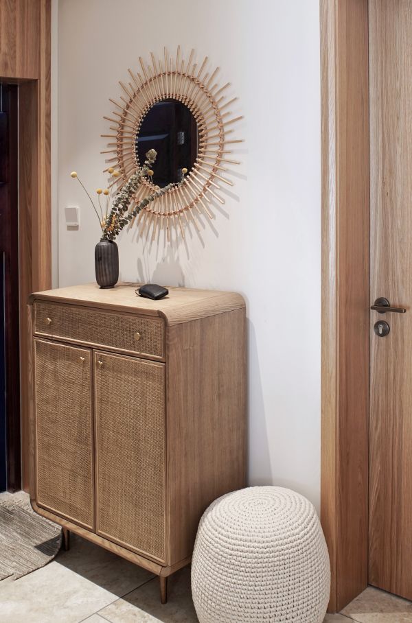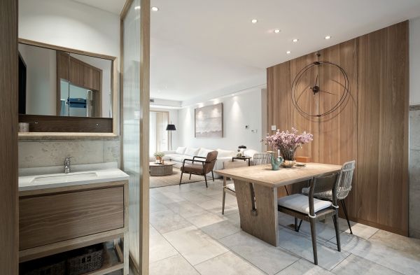 我们调整了房门的朝向,因为这样的动线调整,让主卧室多出了一个独立的衣帽间;我们给餐厅做了一个木质墙挂,因为连接了二宝房间的转角后给用餐之后餐桌的清洁做了个自然的隔绝面;我们把大宝房间斩去一个角,因为外卫的洗手区因为这个角的消失而变得开阔。所有的调整,我们遵从生活的需要让他自然而然。没有多余的一笔,没有无用的一物,生活就是简单而直接。