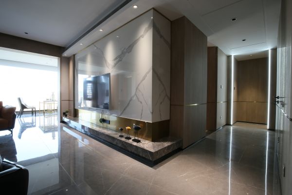 本案为现代轻奢风格,注重硬装修手法的简洁,但也并不像一般的简约风格那样随意看似简洁。朴素的外表之下却常常折射出一种隐藏的贵族气质,所以又给人时尚前卫、气质优雅且不失温馨舒适的感觉。取其精髓,奢华贵气。与端庄秀丽相结合,打造轻奢主义风格。不限制于任何装修元素与色彩,经过自行创新,让空间氛围更加多元化。摒弃了过多的约束,摆脱了沉闷的装修格局,让空间更加开放,让户外美景更好的得到融入。