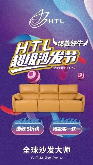 新年焕新意,HTL超级沙发节火爆来袭,恰逢2021新春时节,为反馈新老顾客,1.4-2.21活动期间,欢迎莅临HTL全国门店,约惠新年,爆款机型五折购、买一送一等优惠抢不停。爆款好牛,福利大放送,HTL超级沙发节,让新年更有新意。