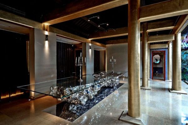 漫步其中,蝈蝈清脆的鸣叫和老式留声机的声音琴瑟合鸣,故宫的字画与传统四合院的铜缸空间一角的残荷,形成了熟悉又新奇的当代东方意境氛围,既有本土文化的“根”,又融合当下最前沿的艺术,形成了让我们极具共鸣的云端空间,让人惊叹不已。