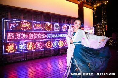 夜宴现场,纱布帷幔,中式灯笼,古典摆台氛围烘托下,古风美食达人与所有嘉宾身着国潮华服超飒亮相,如若重返古老东方,沉浸其中。室外楼台,缤纷绚烂的光影霓虹灯,与室内古风、国潮华服形成碰撞,极具视觉冲击力。