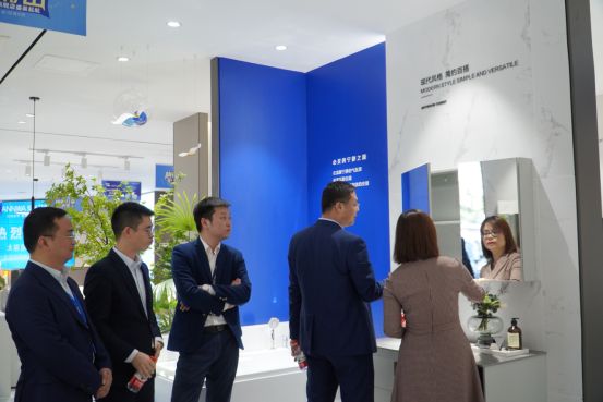 西安大明宫实业集团任总团队在安华卫浴温总的陪同下,参观展厅整个风貌,了解安华卫浴的发展历程、产品技术研发、卫浴空间设计等。在参观过程中,温总详细讲解到安华卫浴新品以及产品的生产工艺、空间搭配等。西安大明宫实业集团任总对安华卫浴高颜值、高品质的卫浴产品给予高度赞赏。
