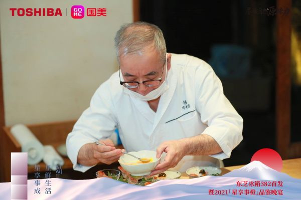为了让用户更加具象感知东芝冰箱所带来的星级料理体验,1号当晚,东芝冰箱特别邀请新加坡国父李光耀的前御用大厨,怀石料理大神中村晴彦先生,在深圳植庭 · 怀石料理餐厅为东芝品牌的深度用户们奉上了一场高端的星级怀石料理品鉴会。