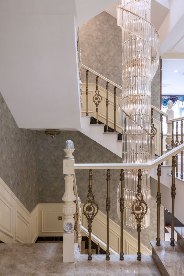 本案为400平方的别墅设计,包括负一楼共四层。整个空间在统一的美式轻奢风格下,贯穿延续铜、皮、布、木四种元素,从观感、空间感和功能性上满足最普适的需求。并在其基础色彩和元素的铺成之上,匠心别具。在给观者以极强艺术感染力的同时,作为日常生活空间,其与居者极富生机的灵感互动。