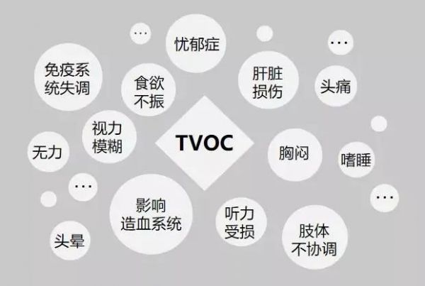 ②VOC挥发性有机化合物很容易通过血液-大脑的障碍,从而导致中枢神经系统受到抑制,使人产生头疼、乏力、昏昏欲睡和不适感