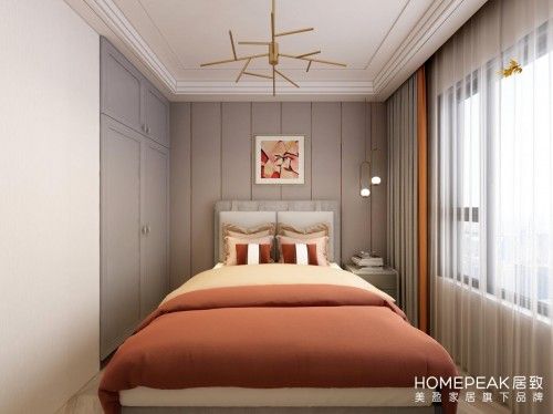 低调内敛的高级灰床具,与活力温暖的赤橙色床品结合,犹如在云烟氤氲之中,刚初升的太阳,焕发着新生的活力,散发着温暖的气息。