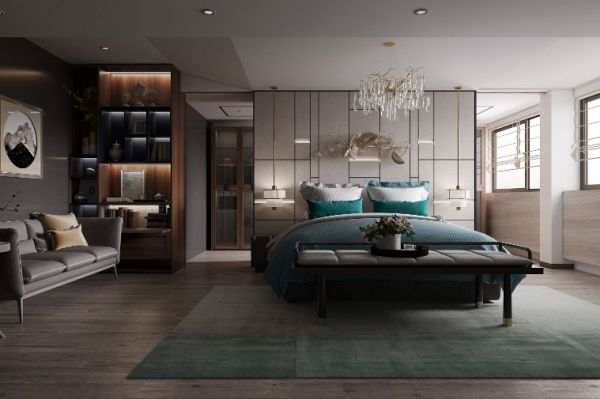 进得房内,卧室中创意多功能收纳柜错落陈列,别具一格,给人豁然开朗之感。通幽处雅藏衣帽间,长短服饰、挂式收纳一目了然,可装点时尚,也可卸下疲惫,让人身心俱回,每晚安然入睡。