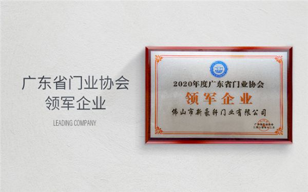 新豪轩门窗:荣获「2020年度广东省门业协会领军企业」称号!