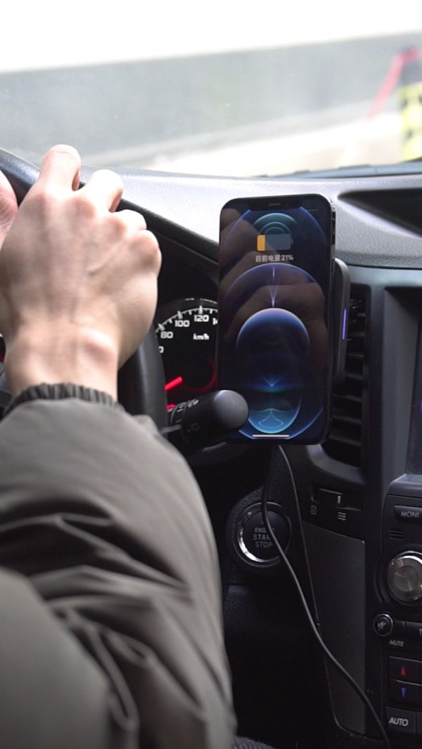 当然前面也说了,自动吸附的同时它也能自动充电,而这一款的实际充电速度甚至比苹果原装磁吸充电器都快。在我的体验过程中,我下班可能50%的电,放上充了半个多小时后电量到了70%以上,这个速度在车内场景里还是非常可观的。而且也不用再受数据线各种问题影响了,车内环境都要整洁的多。