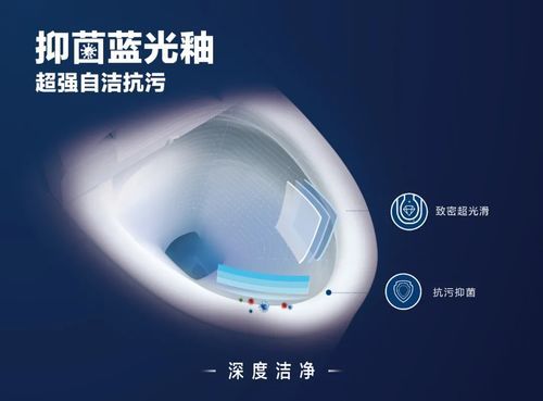 1、抑菌蓝光釉首先是“超洁净”系列智能马桶的抑菌蓝光釉。这种陶瓷釉面是箭牌卫浴与“中科院特种材料中心”合作开发的专利材料,釉面致密光滑,污渍难以粘附,细菌不易繁殖,具有超强的抗污自洁能力。经广东省微生物分析检测中心检测结果显示,抑菌蓝光釉抗菌率高达99.99%,真正做到深度抑菌抗污。