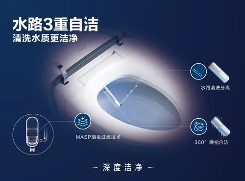 3、水路3重自洁箭牌卫浴“超洁净”智能马桶的水路3重自洁采用“MASP阻垢过滤”技术,经清华大学专家组认证,可对自来水中的重金属颗粒、余氯、虫卵等污染物进行三重过滤,让清洗水质更洁净。另外,为避免交叉污染,马桶的三条独立水路分别进行便洗、妇洗、养生通便和SPA按摩,并且在使用前后,抑菌喷头开启360°喷枪自洁,全面提升清洗系统的洁净度,让清洗更放心。