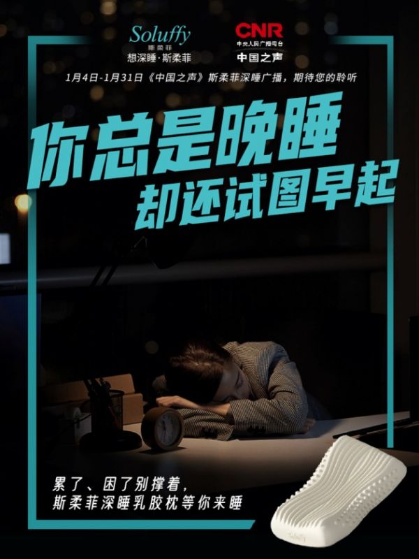 守护健康睡眠,让深睡理念深入人心,需要全社会的共同努力。为此,新年伊始,斯柔菲特携手中央人民广播电台中国之声,以多元的内容和场景化设置,内容涵盖品牌实力、突破研发、匠心工艺以及情景演绎,1月4日到1月31日全天不间断斯柔菲深睡力理念传播,引领乳胶产业匠心精进,为消费者缔造深睡优质臻品,助力国人幸福深睡,让睡眠更健康!