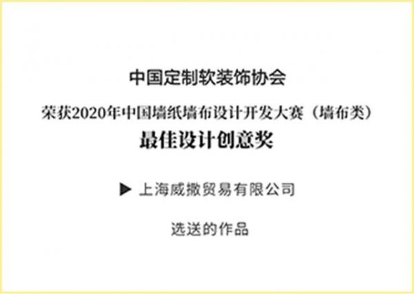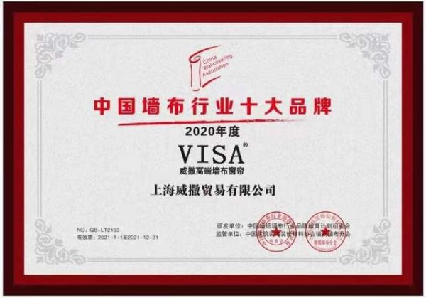 2021年初始VISA高端墙布窗帘品牌,不负重望,继2020年获得《墙布十大品牌》、《世纪金壁奖》再次蝉联《墙布十大品牌》,并且荣获2020年度中国墙纸墙布设计开发大赛(墙布类)《最佳设计创意奖》,两大重量级奖项。