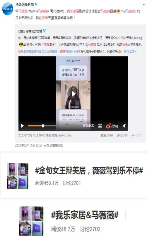 其中,OL家居联合品牌形象代言人高圆圆和知名主持人大佐开展的直播,创下了在线观看人数高达210万+人次,成交额超1亿的成绩,一举夺得当日装修榜七项第一。而联合知名媒体人马薇薇的双十二带货直播带货,更是引爆口碑,超500w的曝光量带来了5000余条的粉丝互动和正面评论,成绩斐然。