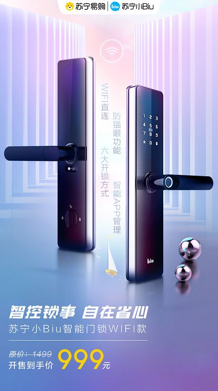 网址:苏宁小Biu智能门锁wifi款999元开售,开挂新体验不容错过 https://c.jiaju82.com/news-view-id-739381.html