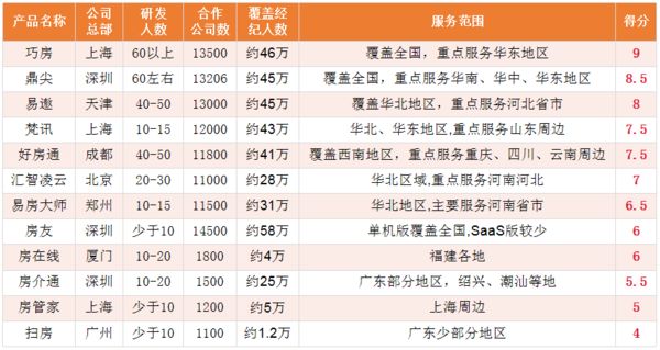 鼎尖:总部在深圳,一线科技城市,公司研发团队实力强大。系统功能齐全,是恒大房车宝等大公司的软件供应商,系统稳定安全,适合大中小各类型中介公司,总的来说性价比也比较高,力推!
