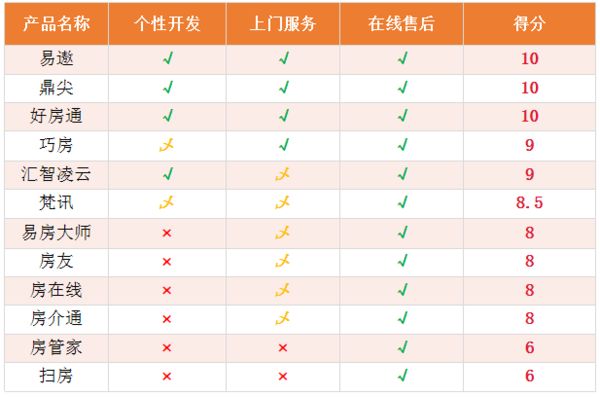 巧房:公司研发团队实力强,软件功能较完善,但功能更新频率不高。服务范围广,售后做得不错。比较担心的是巧房被58全资收购,目前58开始在各城市布局线下门店,未来巧房系统有向58自有品牌进行资源倾斜的风险,建议慎重选用。
