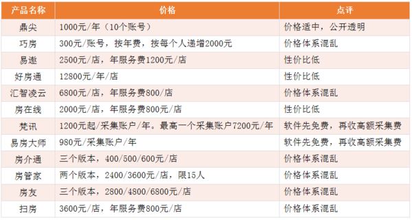 房友:房友是成立得比较早的房产中介软件,单机版较多,SAAS版本还不完善,收费无统一标准。市场上打着房友名号的骗子公司也多,而且近些年,房友也已经把重点放在了易居房友的中介加盟上,因此不建议购买。
