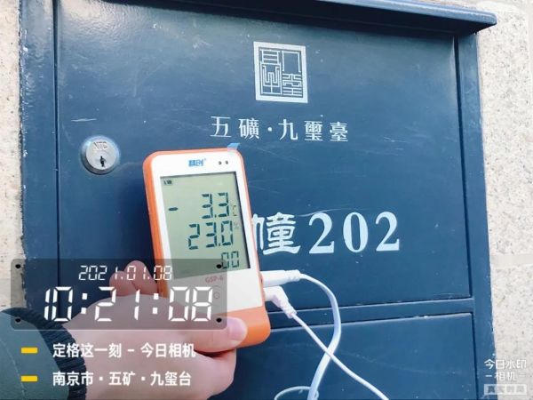 测试当天,专业测评团队在五矿·九玺台业主楼下门口,对当天室外温度进行了测试,结果显示:温度-3.3℃,湿度23%。