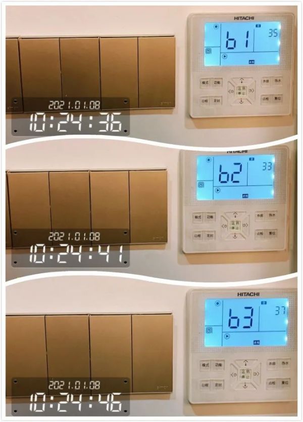 业主家的地暖在测评前的1月5日18:00正式开启,经过两天升温,1月8日测试前1小时将室内地暖线控器设定温度(b1)35℃,水模块入口水温(b2)33℃,水模块出口水温(b3)37℃。因此,当评测团队从室外进入到业主家时,瞬间感觉暖意扑面而来。