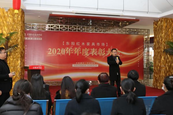 东阳红木家具市场总经理曹伟 为表彰大会致辞