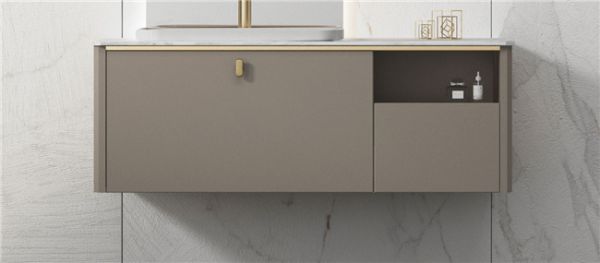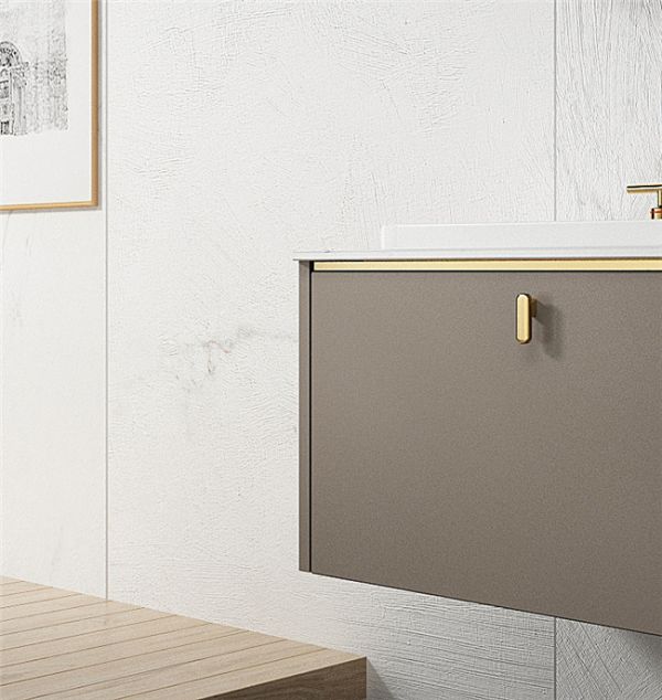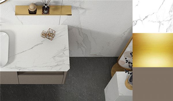 [谧MI]系列,设计师在色彩搭配上采用白色岩板/黄铜色/卡其灰三种色彩搭配,展现轻奢的美感和质感。