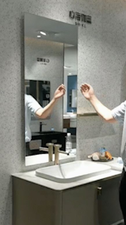 大尺寸智能镜,背藏光设计,避免直射伤害,设计以手势感应灯光开启方式,一亮一暗尽在挥手之间,于静谧中开启美好生活。