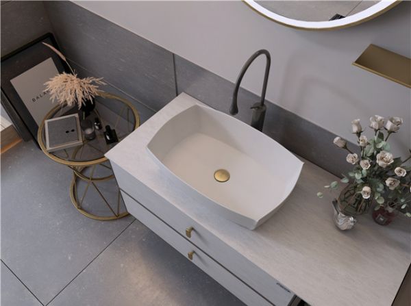 特有精致造型台盆设计,经过磨砂灰柔面工艺处理,盆口大且质感柔和,形成如同家具包浆 似的表面手感,日常洗漱不怕水往外溅。
