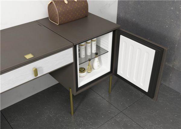 【西江月】系列虽是融入新中式的美,但也把现代智能化生活实现其中,右侧柜体不仅可置入消毒烘干柜,也可放置小冰箱,让日常使用的口红、面膜、香水等化妆品也有了保鲜的待遇。