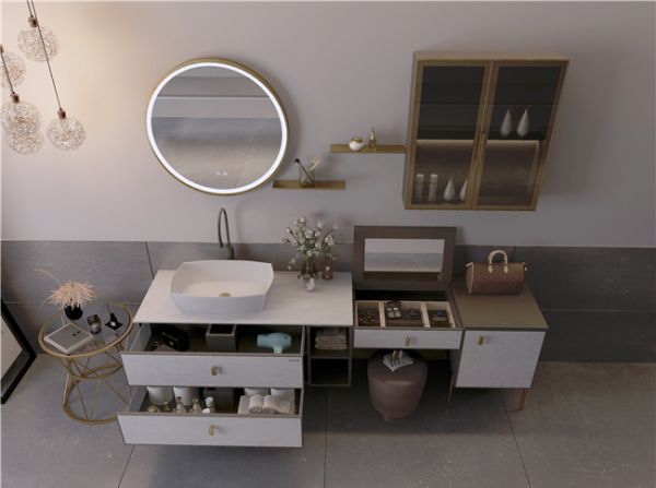 主柜采用洗漱柜+化妆柜+烘干或保鲜柜的颜值+不同模块化功能性设计,一次性满足洗漱功能、梳妆功能、杀菌消毒与储物功能。让有限的空间发挥最大的实效,开启健康生活方式从这里开始。