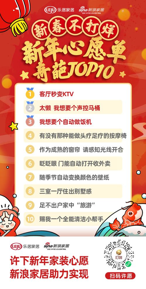 健康和快乐你要怎么选?当代年轻人表示在“呵护自我”上没有边界!如果搜索关于家居产品的种草信息,从空气炸锅到洗碗机,从按摩椅到跑步机,我们会看到相关产品在品类、功效等方面都越来越讲究。而这背后其实是消费者们越来越多元的个人需求。2021年,第一批95后满26岁了,新的一年他们想要什么,家居企业能为他们做什么?自1月11号乐居家居2021年度装修心愿清单上线后,每每看到95后许下的心愿,小编只想感叹一句,没有想不到,只有做不到呀!以下,是小编整理出来的95后新年奇葩装修心愿TOP10。