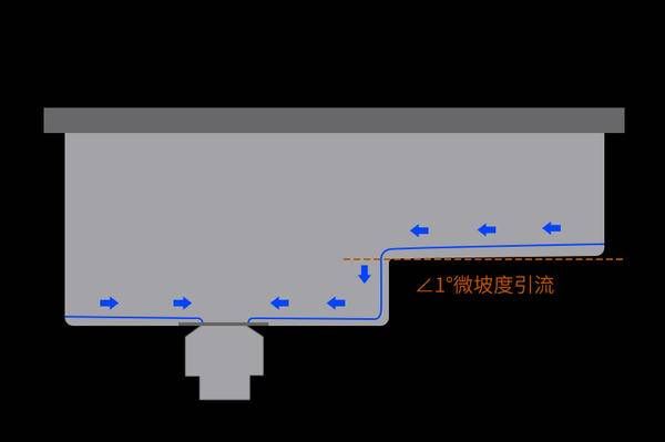 精髓之处在于,这个台面不是完全水平的,卡贝将其设计成角度小于1°的微小斜坡,因而能够起到导流的作用,解冻肉类、放置刚洗好的碗碟等等,沥出来的水流会顺着微坡缓缓流入大槽区域,非常地方便实用。